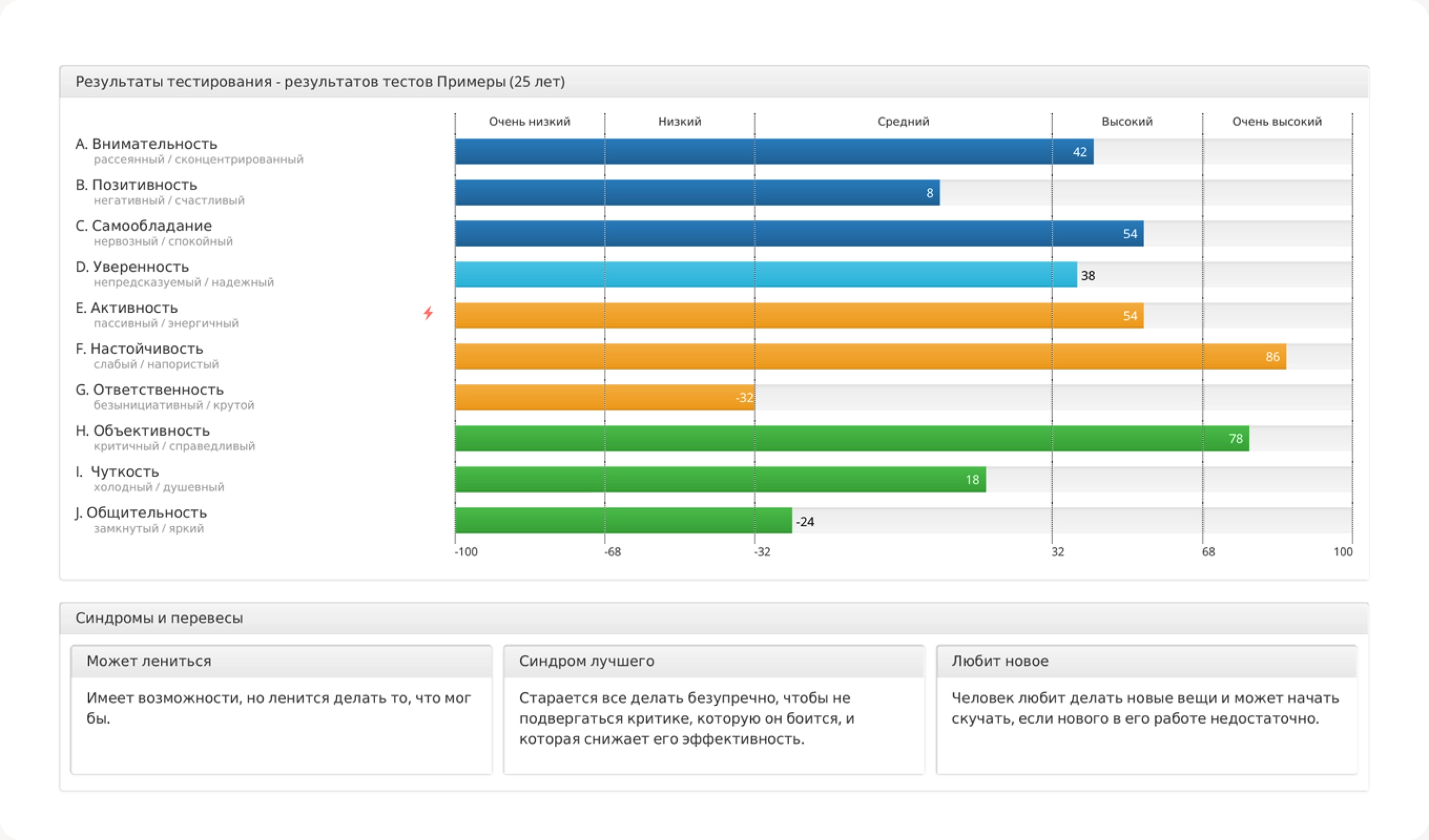 Результаты теста укажут на потенциально проблемные зоны кандидата и помогут обнаружить риски еще на этапе отбора.