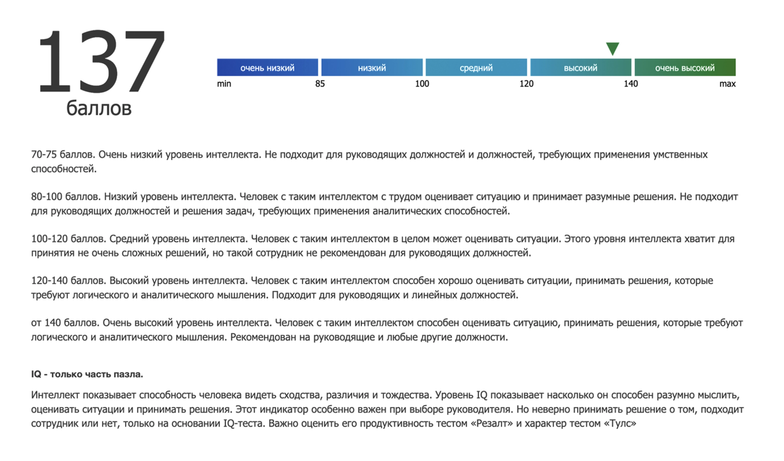 Результаты теста предоставят вам объективную картину продуктивности кандидата и существенно снизят вероятность провести ошибочную оценку его реальных успехов.